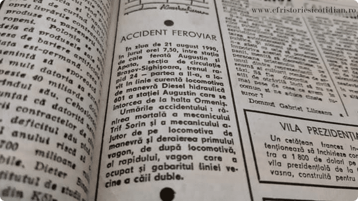 Sursa foto: Ziarul “Gazeta de Transilvania” din 22.08.1990 care evoca tragicul accident avut loc cu o zi înainte, bzb.ro