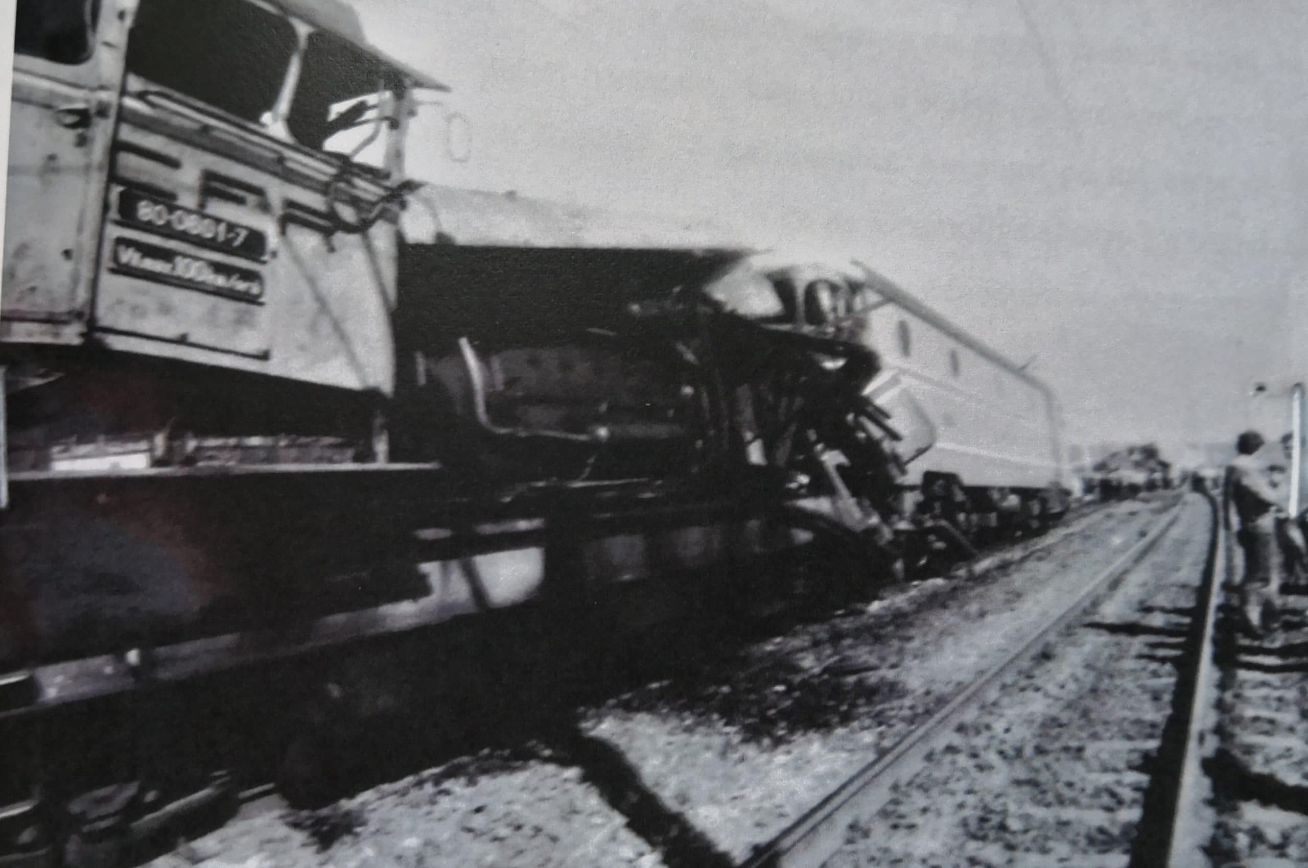 Sursa foto: Impactul dintre EA 001 si LDH 601, foto preluată din cartea “Un taxi pe drum de fier”, autor Emil Dănescu