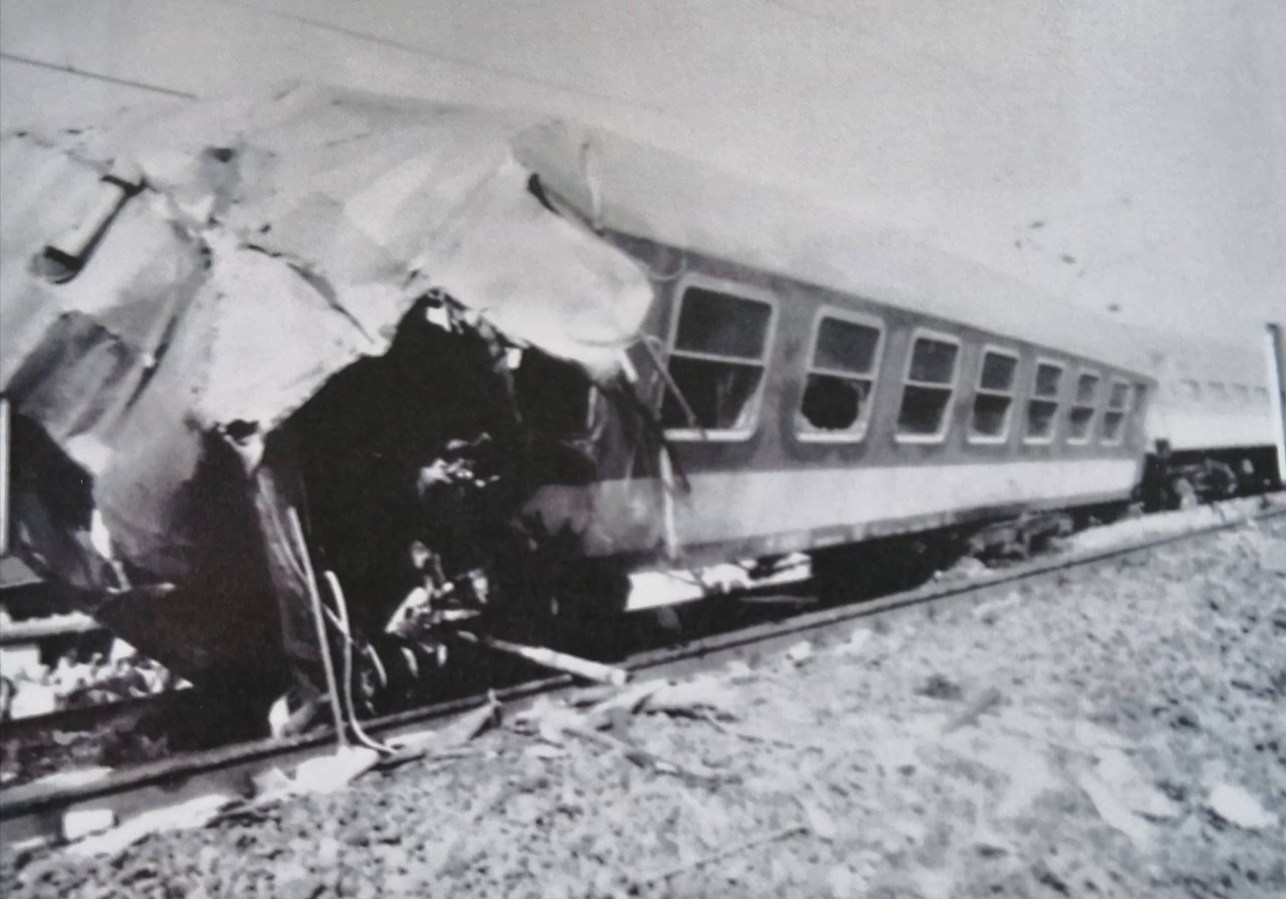 Sursa foto: Imagine cu Rapidul 24 de la locul accidentului, foto preluată din cartea “Un taxi pe drum de fier”, autor Emil Dănescu